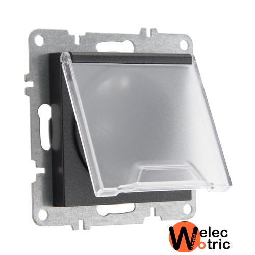 Розетка с крышкой IP41 Arvia черная глянцева,