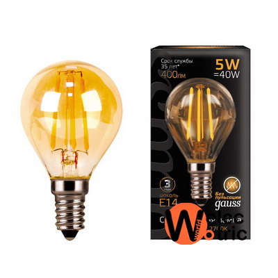 105801005 Gauss Лампа LED Filament шарообразная E14 5Вт 2700К