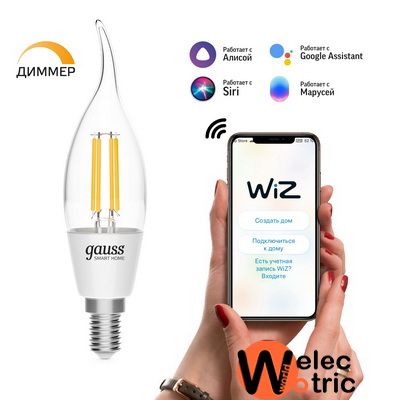 Филаментная лампа с Wi-Fi умная система Gauss Light DIM E14 CF35 4,5 Вт 2700-6500K, диммируемая, управление голосом/смартфоном
