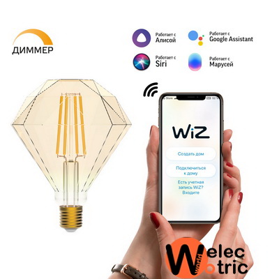 Филаментная лампа с Wi-Fi умная система Gauss Light ССТ DIM E27 ST64 6,5 Вт 2700-6500K, диммируемая с изменением температуры, управление голосом/смартфоном