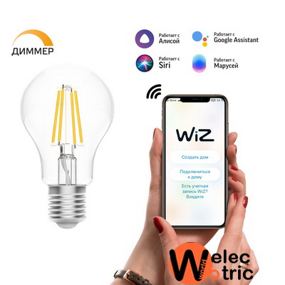 Филаментная лампа с Wi-Fi умная система Gauss Light DIM E27 A60 7 Вт 2700-6500K, диммируемая, управление голосом/смартфоном