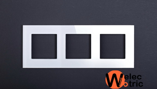 Рамка трехпостовая белая из Plexiglass коллекции "Глянец" толщиной 4 мм. В рамки коллекции "Глянец" устанавливаются универсальные механизмы розеток, клавишных выключателей, а также механизмы сенсорных выключателей для многопостовых рамок.