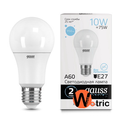 Лампа Gauss Elementary A60 при скромном потреблении в 10 Вт обладает солидной силой светового потока, который проникнет в каждый уголок помещения, создавая равномерное освещение с достаточной яркостью и чистотой света.