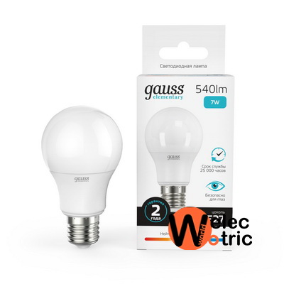 Лампа Gauss Elementary A60 расходует всего 7 ватт электроэнергии для создания светового потока в 540 люмен.