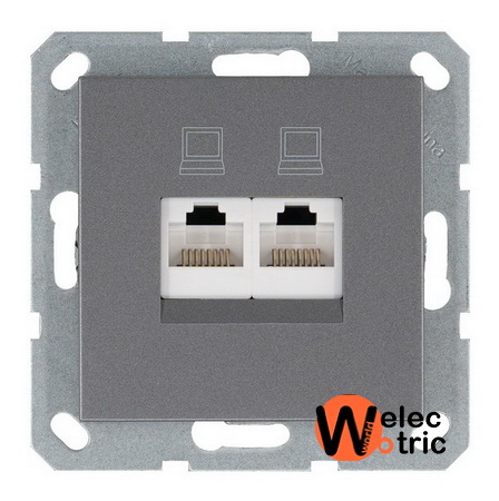 Компьютерная розетка rj45 двойная UTP cat 5e Jasmart алюминий - стандартный механизм, закрывает максимальную скорость по всем провайдерам России.