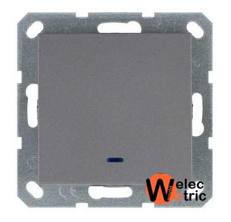 Проходной выключатель одноклавишный с подсветкой Jasmart алюминий - работает в паре с таким же как он переключателем, либо в паре с перекрестным проходным переключателем.
