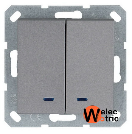 Выключатель двухклавишный с подсветкой Jasmart алюминий - стандартный выключатель предназначенный для выключения двух линии потребителей,