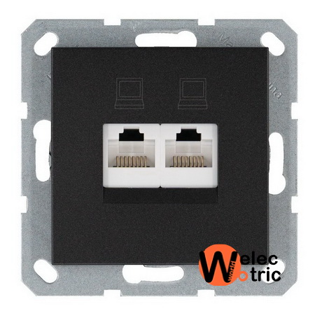 Компьютерная розетка rj45 двойная UTP cat 5e Jasmart антрацит - стандартный механизм, закрывает максимальную скорость по всем провайдерам России.