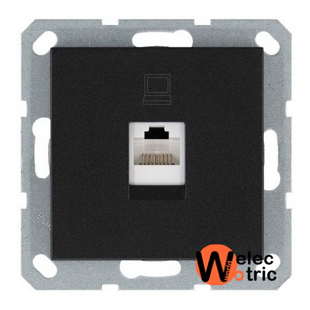 Компьютерная розетка rj45 UTP cat 5e Jasmart антрацит - стандартный механизм, закрывает максимальную скорость по всем провайдерам России.