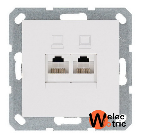 Компьютерная розетка rj45 двойная UTP cat 5e Jasmart белая - стандартный механизм, закрывает максимальную скорость по всем провайдерам России.