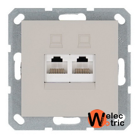 Компьютерная розетка rj45 двойная UTP cat 5e Jasmart тауп - стандартный механизм, закрывает максимальную скорость по всем провайдерам России.