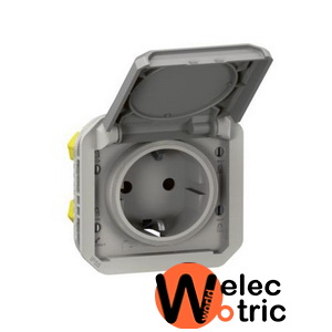Розетка с крышкой IP55 автоматический зажим Plexo серая