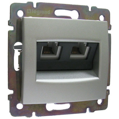 Розетка телефонная двойная rj 11 Valena Classic алюминий