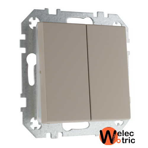 Выключатель двухклавишный с подсветкой Liregus бежевый матовый