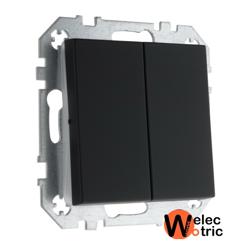 Выключатель двухклавишный с подсветкой Liregus черный матовый