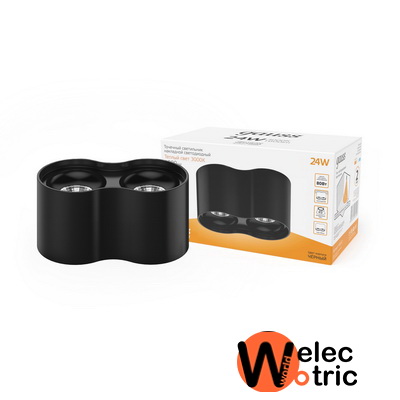 Светильник Gauss Overhead двойной цилиндр предназначен для освещения жилого пространства соответствующего IP 20. Его мощность составляет 24w, сила светового потока 1600лм с теплым белым светом 3000К. Это отличный вариант для зонирования пространства или акцентного света. Угол 45 градусов позволяет создать приятное освещение теплого 3000лм белого света. Степень защиты предполагает использование в сухих комнатах это спальни, гостинные, коридоры, прихожие. Корпус изготовлен из алюминия и покрашен в черный цвет. Материал рассеивателя прозрачное стекло.