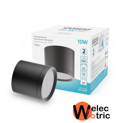 Светильник Gauss Overhead цилиндр накладной черного цвета стильной и лаконичной формы с мощностью 10w и углом светового пучка 120°. Он изготовлен из прочного легкого алюминия, имеет яркий свет 720лм с нейтральной цветовой температурой 4100К. Может быть использован в любых современных интерьерах в качестве акцента световой зоны или же общего освещения комнаты с люстрой или без нее. Подходит для низких потолков. Предназначен только для сухих помещений с IP 20.