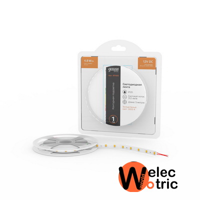 Cветодиодная лента Gauss 12В 4,8Вт/м 3000K 8м IP20 5м - купить со скидкой вы можете в нашем интернет магазине, выберите удобный способ доставки, или можете забрать самостоятельно самовывозом в Москве.
