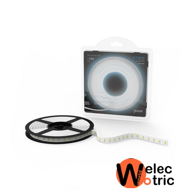 Cветодиодная лента Gauss 4,8Вт 12В DC холодный белый IP66 5м - купить со скидкой вы можете в нашем интернет магазине, выберите удобный способ доставки, или можете забрать самостоятельно самовывозом в Москве.