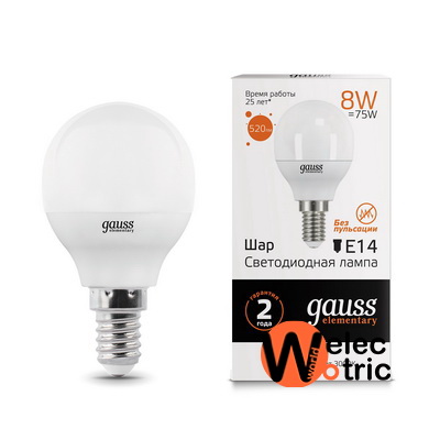 53118 Gauss Лампа LED Elementary шарообразная E14 8Вт 3000К