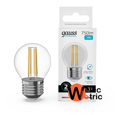 52222 Gauss Лампа LED Filament Elementary шарообразная E27 12Вт 4100К