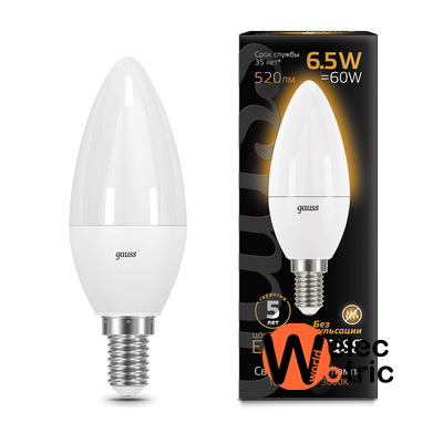 103101107 Gauss Лампа LED Black свеча E14 6.5Вт 3000К